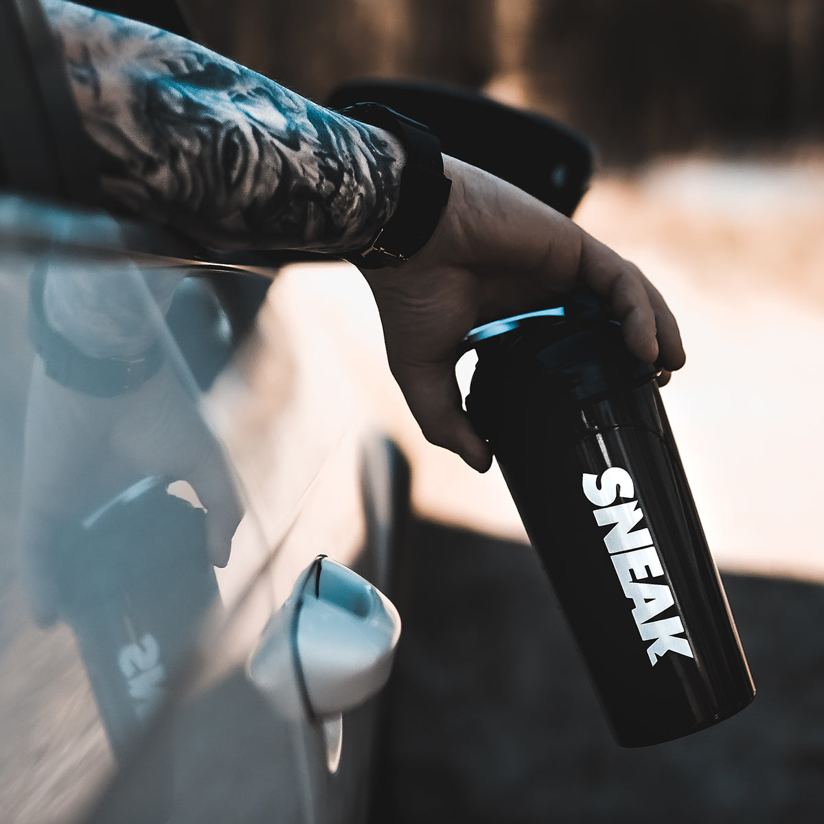 Let’s start simple. What is a shaker? It’s your go-to equipment for blending your choice of Sneak Energy powder into a smooth, silky drink. A shaker typically features a grill or a mixing ball to help evenly distribute the powder with the water (or liquid of your choice).