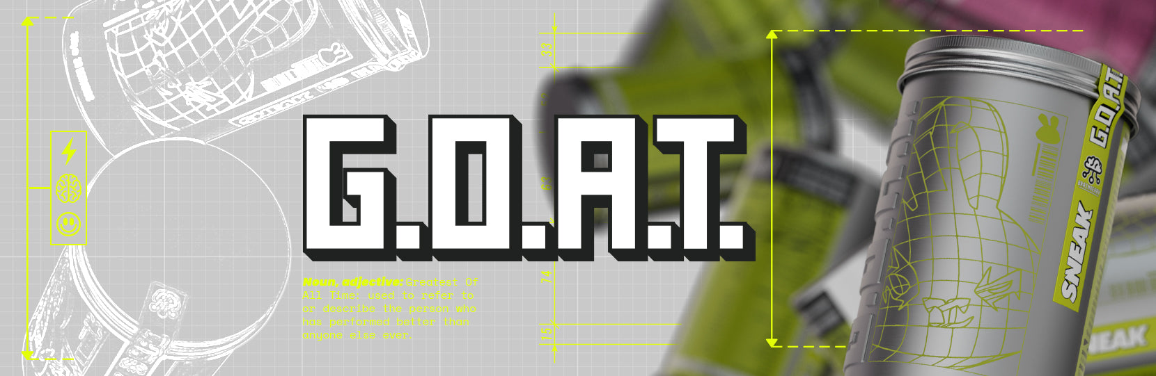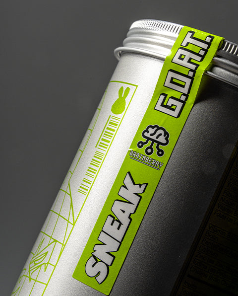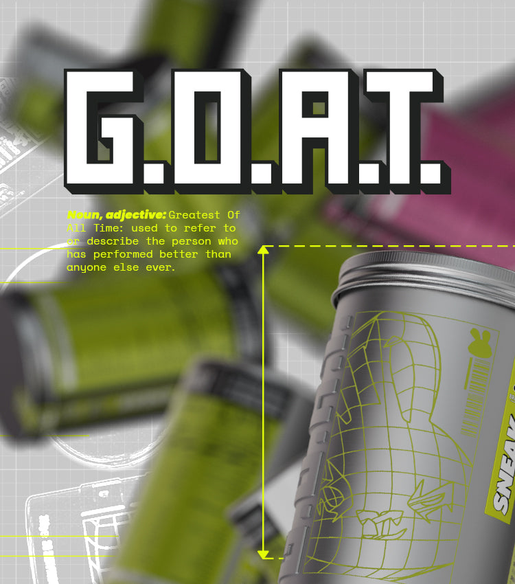The Greatest Of All Time… now in powder form. Introducing G.O.A.T - the new premium energy drink from SNEAK. With Brainberry®, natural caffeine and two brain-boosting flavours: Cherry Apple and Raspberry Lemonade.