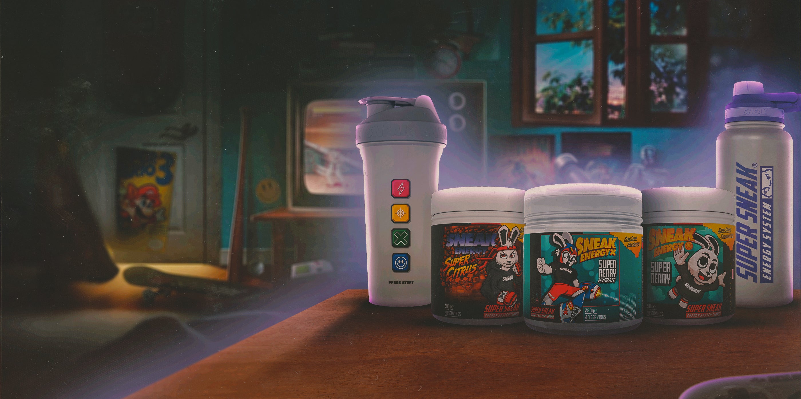 No caffeine, no cooldowns - just clean, fruity refreshment to keep you locked in. In the style of a pixel-perfect RPG, this classic berry hydrate flavour delivers electrolytes, vitamins, minerals with a heavy dose of nostalgia. PLUS - get 40 servings in a 30-serving tub. This is SUPER Sneak after all.